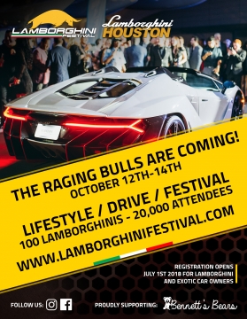 The Lamborghini Festival in Houston is October 13-15 this year, and they are sponsoring Bennett's Bears.